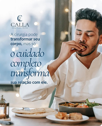 Na Calla, oferecemos planos de tratamento personalizados, na área de nutrição, estética e cuidados pré e pós cirúrgicos de cirurgia plástica e ortognática, todos voltados para o público masculino, desenvolvidos para lhe proporcionar saúde, bem estar e recuperação segura pós procedimentos cirúrgicos.